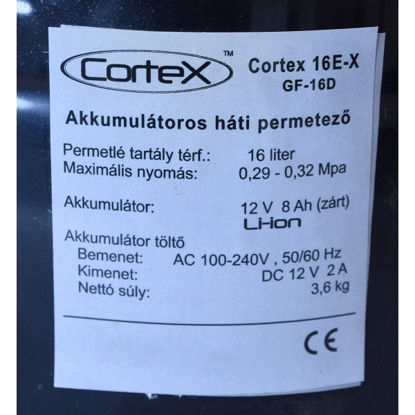 Akkumulátoros 16 literes háti permetező Li-ion