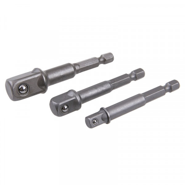 Három részes adapter készlet különböző felfogatású dugókulcsok használatához. Mindhárom adapter hatlapú 1/4-es felfogóval rendelkezik.