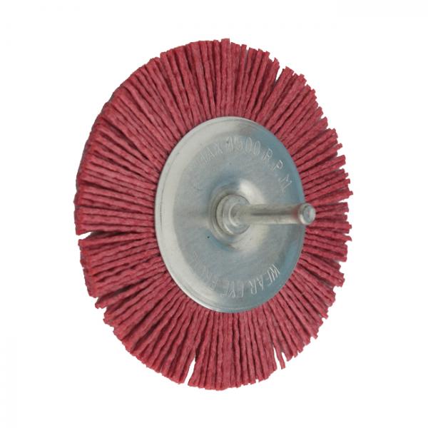 • Hullámos, beágyazott alumínium-oxid szemcsékkel ellátott, nylon szálú, csapos rekord körkefe