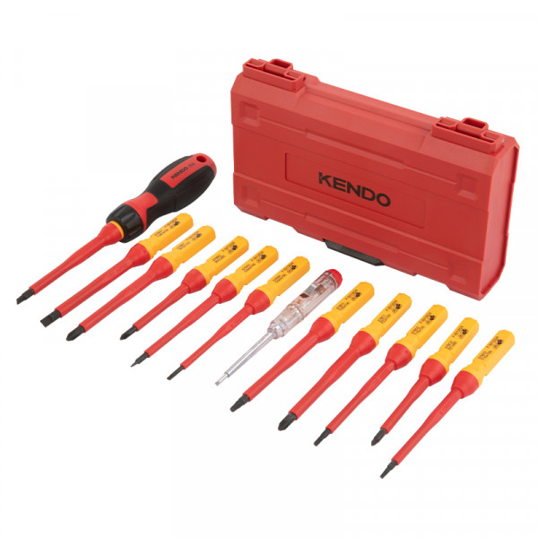 KENDO VDE szigetelt csavarhúzó készlet 12+1r. SL+PH+PZ+TX+fázisceruza