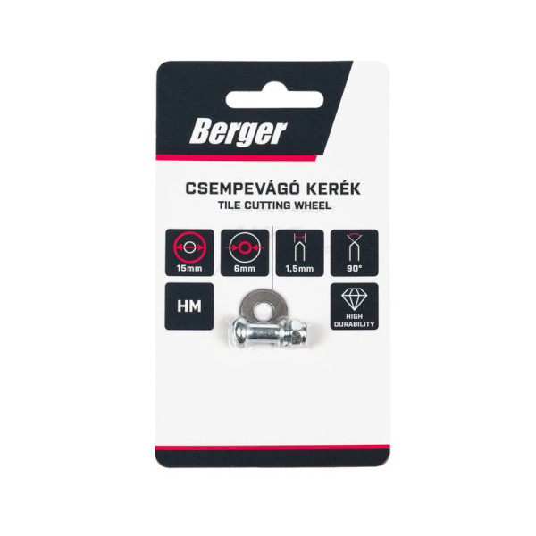 A BERGER csempevágó kerék HM d15×6×1,5 mm TCE‑W150601.5 univerzálisan használható minden olyan csempevágóval, amely azonos méretű vágókorongot alkalmaz. A kerék keményfém vágóéllel készül, amely hosszú élettartamot és egyenletes, tiszta vágást biztosít különféle burkolólapokon. A keményfém él ellenáll a kopásnak, így intenzív használat mellett is megbízható teljesítményt nyújt.