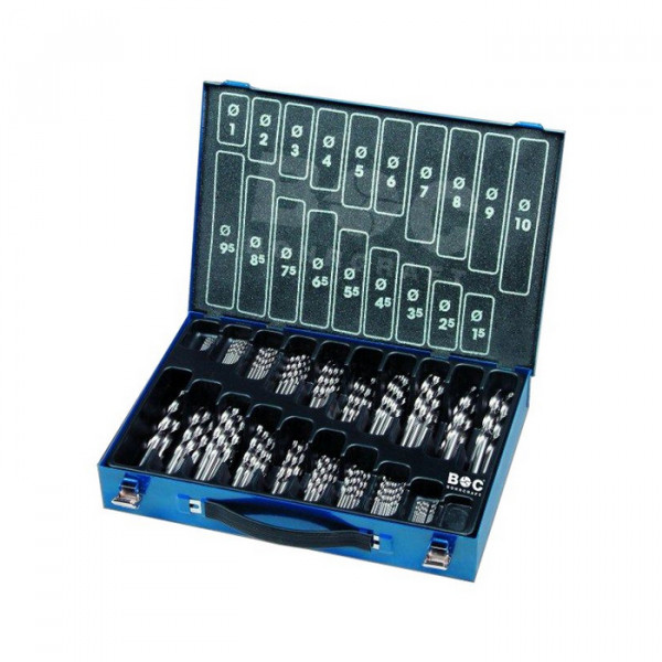 Csigafúró készlet 1-10mm HSS-G 170r. köszörült fém dobozban BHC
