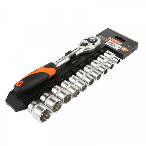 Kiváló minőségű, KENDO 11 részes 1/2" dugókulcs készlet a leggyakrabban használt méreteket tartalmazza