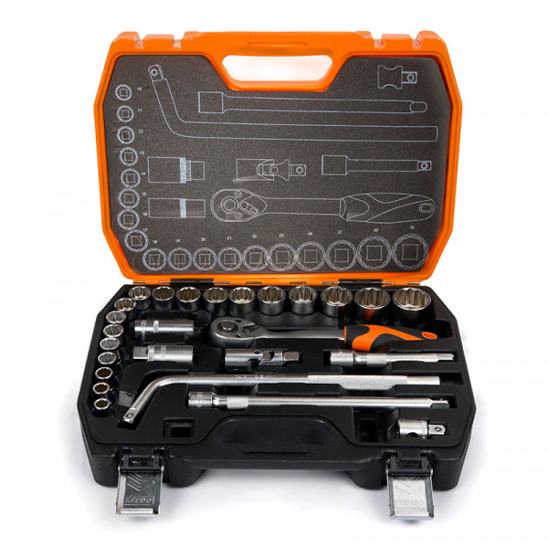 • A 26 részes, KENDO 1/2" dugókulcs készlet minden alapvető szerszámot tartalmaz, ami a ház körüli munkákhoz szükséges