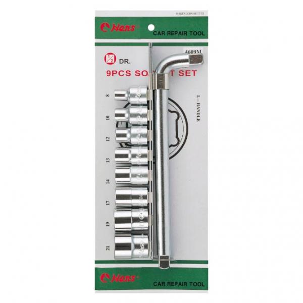 Dugókulcs készlet 1/2" 9r. 8-21mm L-hajtószárral HANS 4609M