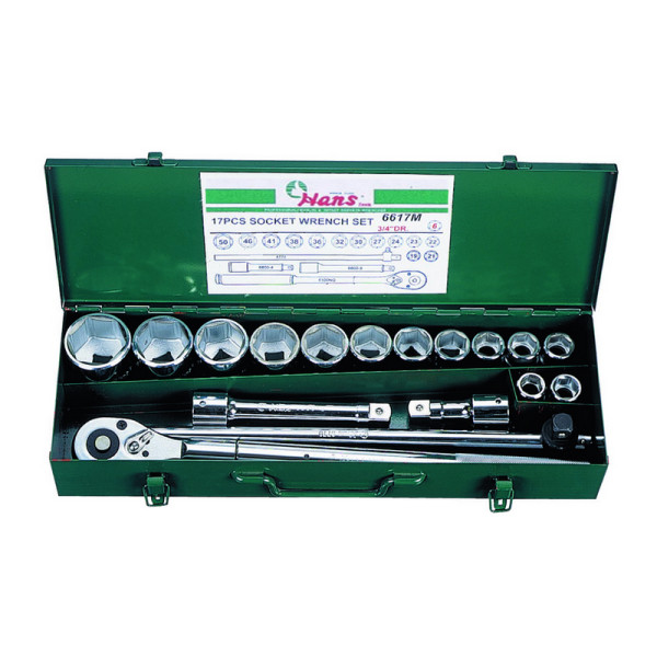 HANS 3/4" dugókulcskészlet 17 részes 19–50 mm 6617M – Professzionális, nagy teherbírású készlet
