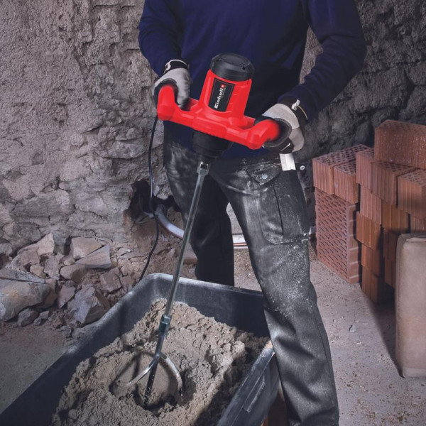 Az Einhell TC-MX 1200 festék- és habarcskeverőjében a lelkes hobbi felhasználók hű társra lelnek: akár építkezéseken, akár felújításhoz vagy projekt munkákhoz használják a készüléket, a nagyteljesítményű, 1200 wattos motorral könnyedén összekeverhetik a festéket vagy a habarcsot. Az egysebességes, viszkózus anyagok összekeverésére tervezett kompakt kialakítású készülékkel dolgozva biztos lehet abban, hogy a végeredmény mindig tökéletes lesz, az elektronikus fordulatszabályozásnak köszönhetően ugyanis a fordulatszámot mindig a megmunkálandó anyag tulajdonságaihoz igazíthatja. A folyékony festékeket vagy a por állagú anyagokat (pl. habarcsot, csemperagasztót, fugázó- vagy kiegyenlítő anyagokat) könnyedén összekeverheti a TC-MX 1200 segítségével. A Softstart (finomindítás) funkció segít abban, hogy a masszát homogén anyaggá keverje anélkül, hogy az kiloccsanna. A Softstart funkció nagy segítséget jelent a speciális keverékek elkészítésében is. Az Einhell festék- és habarcskeverőjét ergonomikus fogantyúval szerelték fel, amelynek köszönhetően még a sok keverést igénylő anyagokat is könnyedén, fáradtság nélkül keverheti össze. Az M14 menettel ellátott erős keverő szár befogóba bármilyen (azonos menetű) keverő szárat befogathat. A gyári csomagban található egy habarcskeverő (Ø 100 mm).