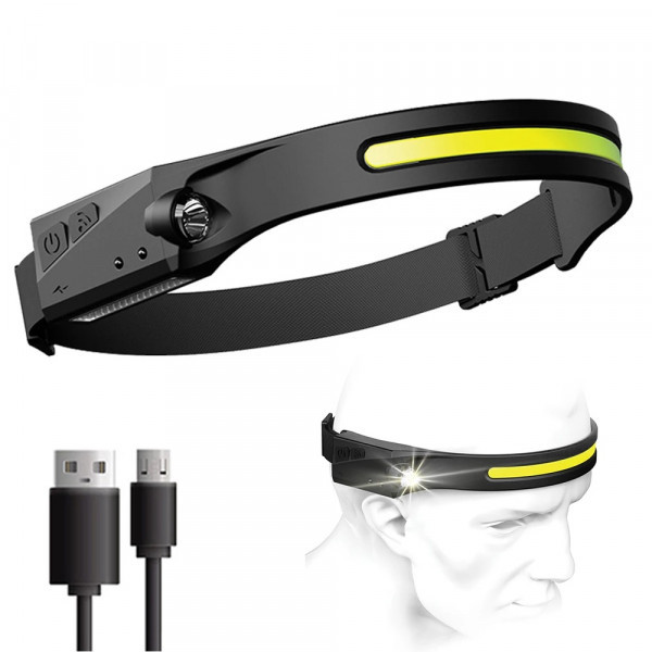 LED-es tölthető fejlámpa 350 lumen – mozgásérzékelős, 230° fényszög, USB-C töltés, IPX4 vízállóság