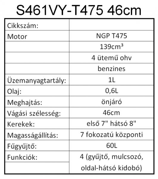 Fűnyíró 46cm gyűjtős önjáró NGP S461VY T475