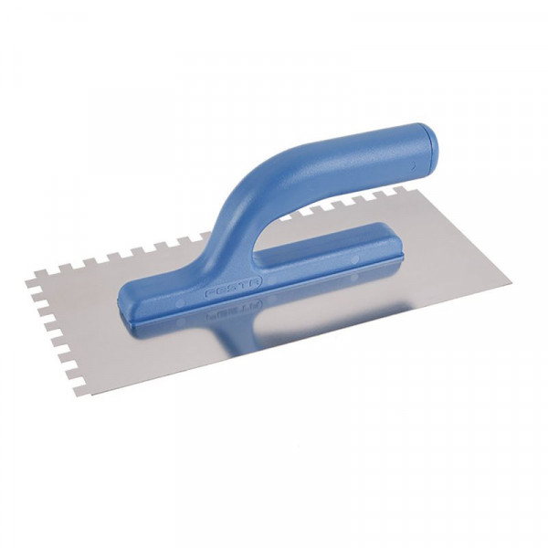 Műanyag nyéllel, lemezvastagság 0,8 mm. Elsősorban csempék és burkolatok alá ragasztók felhordására, valamint esztrichek, stukkó, vakolatok, tömítőanyagok és egyéb építőanyagok felhordására használják. A rozsdamentes fogazott simító lehetővé teszi a ragasztó vagy építőanyag nyújtását csíkokban és a simító fogának megfelelő magasságban.
