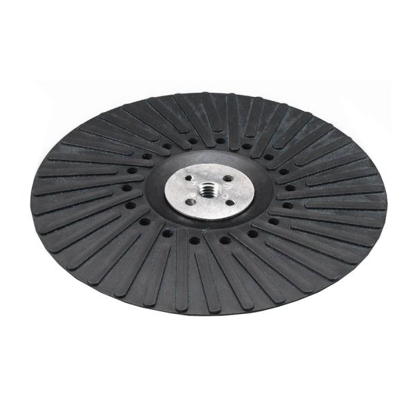 Sarokcsiszolóra felfogható gumitányér kemény kivitelben hűtőbordákkal a csiszoláskor fellépő hő elvezetésére, mellyel a gumitányér és csiszolóanyag hőmérséklete csökkenthető. A fíbertárcsák egy felfogató anya segítségével biztonságosan rögzíthetők.