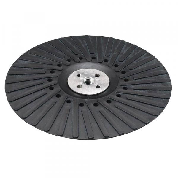 Sarokcsiszolóra felfogható gumitányér kemény kivitelben hűtőbordákkal a csiszoláskor fellépő hő elvezetésére, mellyel a gumitányér és csiszolóanyag hőmérséklete csökkenthető. A fíbertárcsák egy felfogató anya segítségével biztonságosan rögzíthetők.