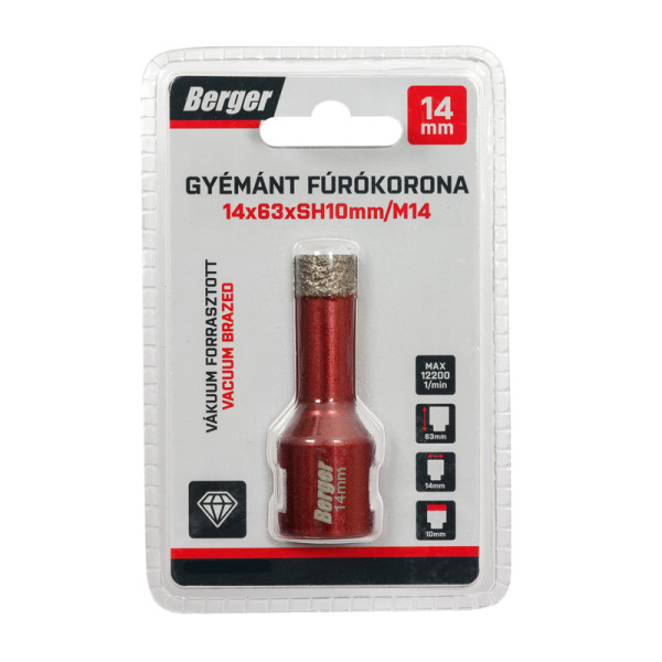 BERGER menetes gyémánt fúrókorona 14x63xSH10mm/M14