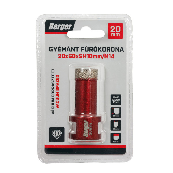 BERGER menetes gyémánt fúrókorona 20x60xSH10mm/M14