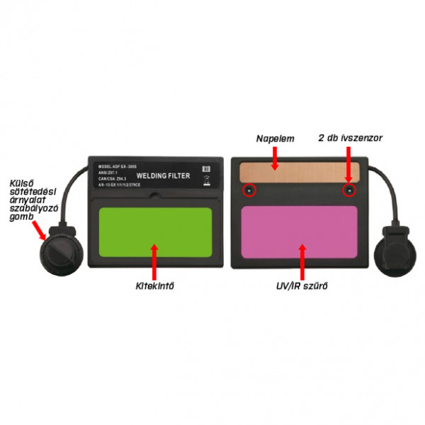 • A sötét állapot DIN 9-13 árnyalatok között szabályozható