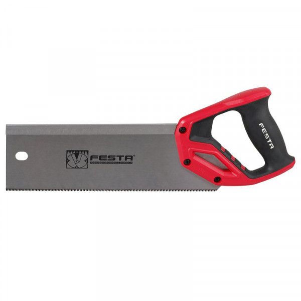 Festa fűrész 300mm ABS nyélen lágyított TPR gumival, nagyfrekvenciás edzett élezett fogakkal, keménység: 47-52HRC, fogazás: 12TPI, a nyél 45 és 90 szögek jelölését teszi lehetővé.