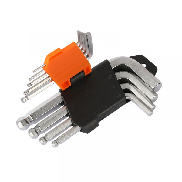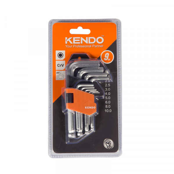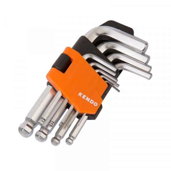 • Króm-vanádium acélból készült, 9 részes KENDO gömbvégű imbuszkulcs készlet