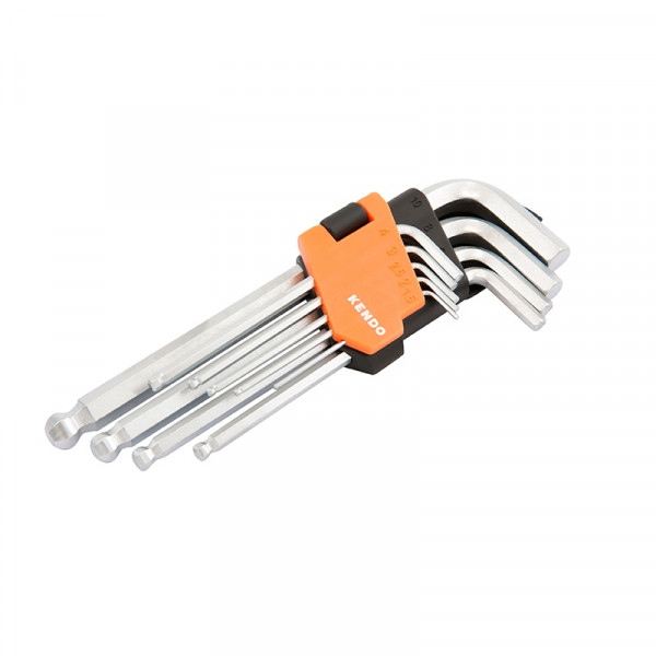 Imbuszkulcs klt. 9r. hosszú gömbvégű 1,5-10mm KENDO