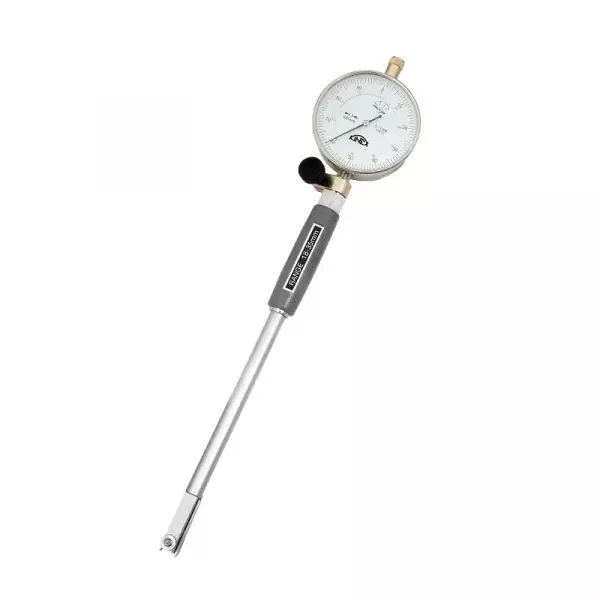 A tárcsás mikrométeres tárcsafurat-mérő két érintkezővel rendelkezik, amelyek közül az egyik rögzített (cserélhető), a másik mozgatható, míg mindkét érintkezőnek a mért furat tengelyéhez való igazítása egy központosító eszközzel történik. A mozgatható ceruza mechanikus átvitellel továbbítja a méretváltozásokat a tárcsajelző skálán. A kavitációs mérő névleges értékre történő beállítását kalibráló gyűrűk, mikrométer vagy mintafuratok segítségével végezzük. Két ponton mérő furatmérő. Acél fix mérőtapintók. Analóg mérőórával.
