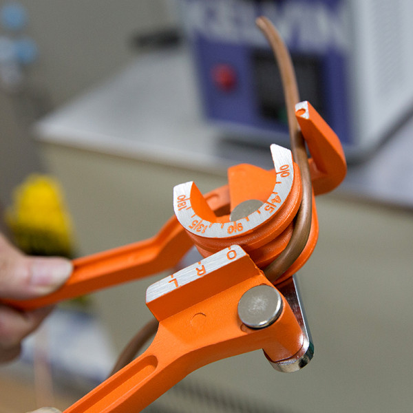 • Ø6-8-10 mm (1/4", 5/16" és 3/8") puha vörösréz, sárgaréz, alumínium csövek pontos, kétkezes hajlításához 180°-os szögig