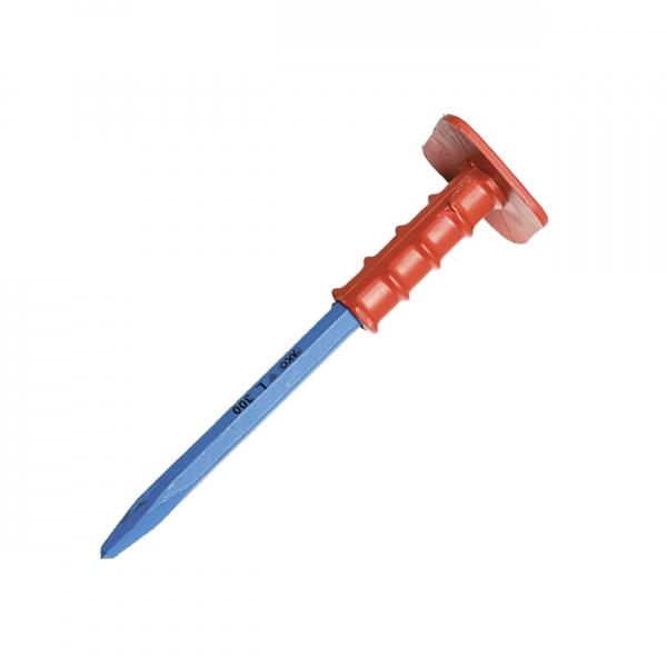 Bontóvéső hegyes véggel, nagy biztonságosan fogható műanyag vagy gumi markolattal és kézvédő koronggal a markolat végén az esetleges kézsérülések elkerülésének érdekében.