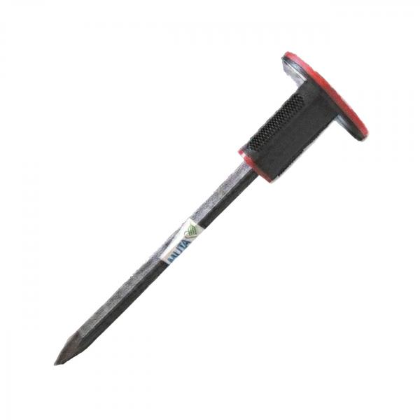 Bontóvéső hegyes véggel, nagy biztonságosan fogható műanyag vagy gumi markolattal és kézvédő koronggal a markolat végén az esetleges kézsérülések elkerülésének érdekében.