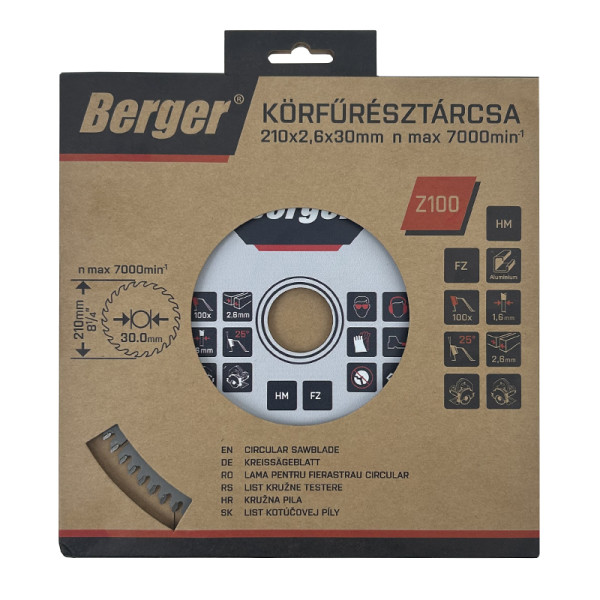 A 100 fogas kialakítás finom vágási minőséget nyújt, a 210 mm átmérő és 30 mm furatméret pedig kompatibilissé teszi számos körfűrész géppel. A BERGER tárcsa megbízható választás műhelyekben, fémipari feladatoknál és professzionális felhasználásra.