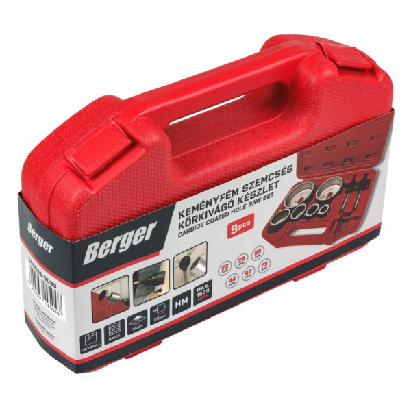 BERGER keményfém szemcsés körkivágó készlet – HM, 9 részes, 22–73 mm