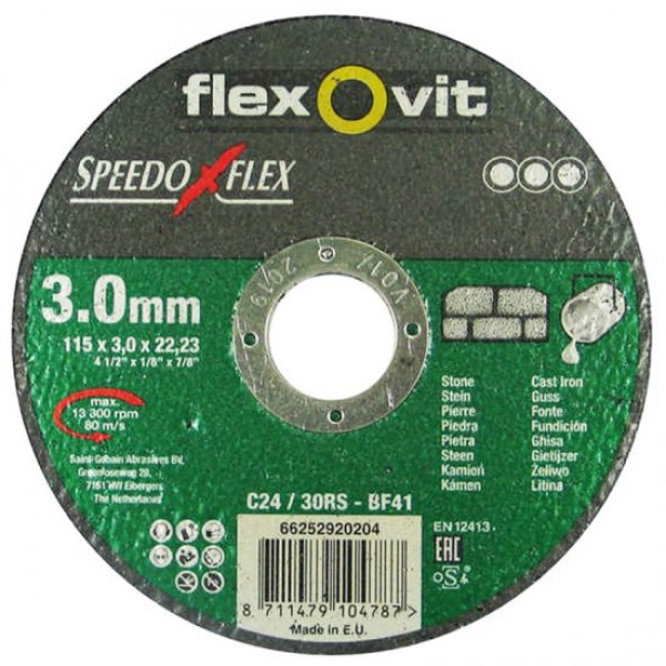 A Speedoflex vágókorongok mind az ipari, mind a kisebb munkák elvégzéséhez tökéletes megoldást nyújtanak. Kifejezetten kövek vágására tervezett és gyártott vágókorong. Használata kézi sarokcsiszolókon ajánlott.