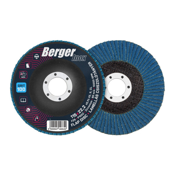 BERGER INOX lamellás csiszolótányér F29 kúpos 115 × 22,2 P100Z