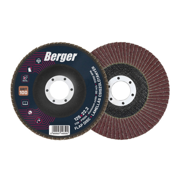 BERGER lamellás csiszolótányér F29 kúpos 125 × 22,2 P100A