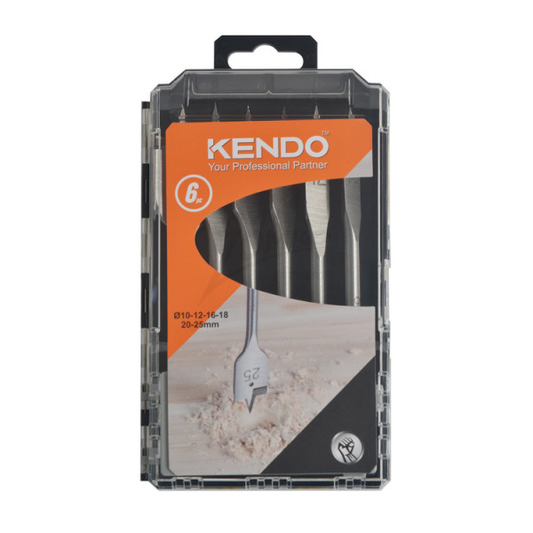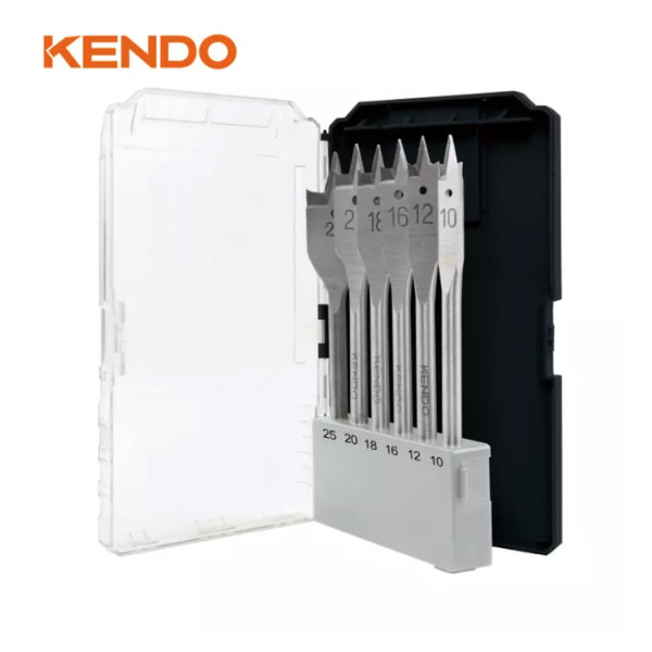 KENDO lapos fafúró készlet 6 részes – Ø10–12–16–18–20–25 mm, magas széntartalmú acél, praktikus tárolódobozban