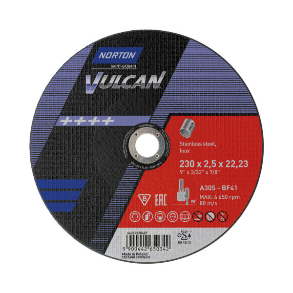 NORTON VULCAN INOX vágókorong 230×2,5×22,2 mm A30S-BF41 – Prémium INOX vágóteljesítmény