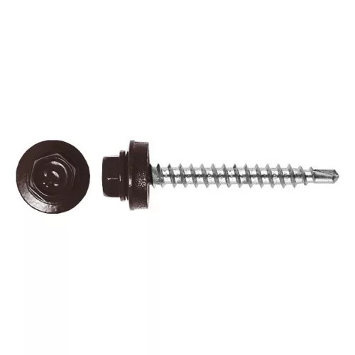 Prémium önfúró hatlapfejű lemezcsavar FÁHOZ RAL8017 csokibarna színben EPDM alátéttel