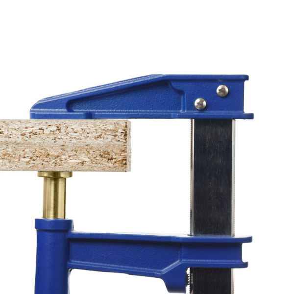 A felső pofa szegecserősítéssel készült, a monoblokk szorítódugattyú pedig nagy igénybevétel mellett is stabilan működik. A fém, csúszó meghajtókar gyors és hatékony kezelést tesz lehetővé, így a szorító ideális választás faipari, asztalosipari és szerelőműhelyek számára.