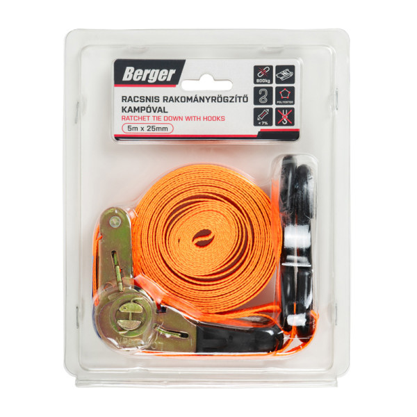 BERGER racsnis rakományrögzítő 5m x 25mm – Ipari spanifer 800 kg-os szakítóerővel