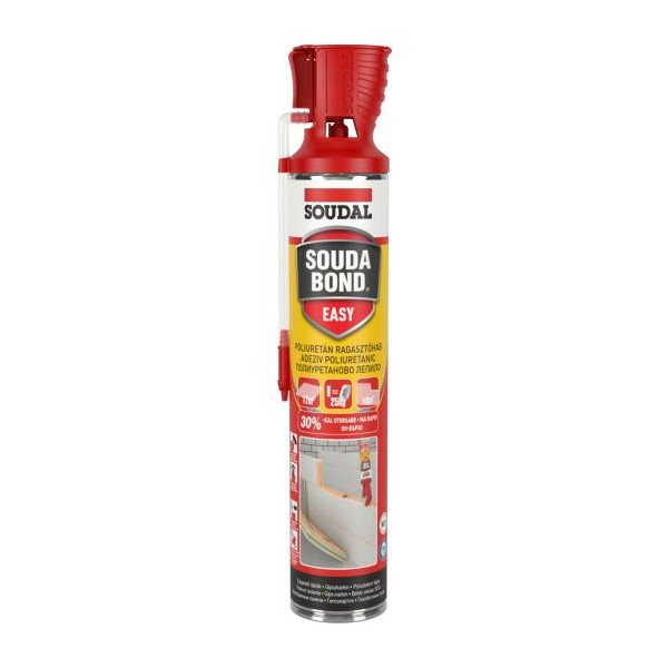 A Soudabond EASY egy kiváló teljesítményű poliuretán ragasztóhab. Gyorsan, könnyen használható, használatra kész, helyettesíti a hagyományos poralapú ragasztókat. Ez a készítmény kombinálja az erős tapadást a réskitöltő sajátosságokkal, így alkalmas egyenetlen felületek ragasztására. Szinte minden építőanyag, például szigetelőlapok és gipszkarton ragasztására, valamint belső falak készítésére használható könnyű falazóelemekből. A Genius Gun® egy szabadalmaztatott, könnyű egykezes használatra tervezett fej. Visszazárható, ezzel lehetővé teszi, hogy a terméket az első használat után 6 héten belül újra lehessen használni.