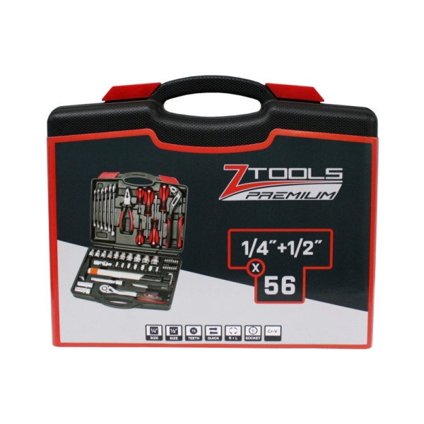 Z-TOOLS 1/4" + 1/2" szerszámkészlet – 56 részes, komplett megoldás otthoni és hobbi felhasználásra