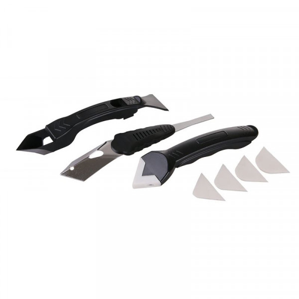 A 3 részes készlet segítségével a régi fuga eltávolítható, illetve ideális minden befejező munkához, pl.: szilikon és akril illesztések felhordásához.