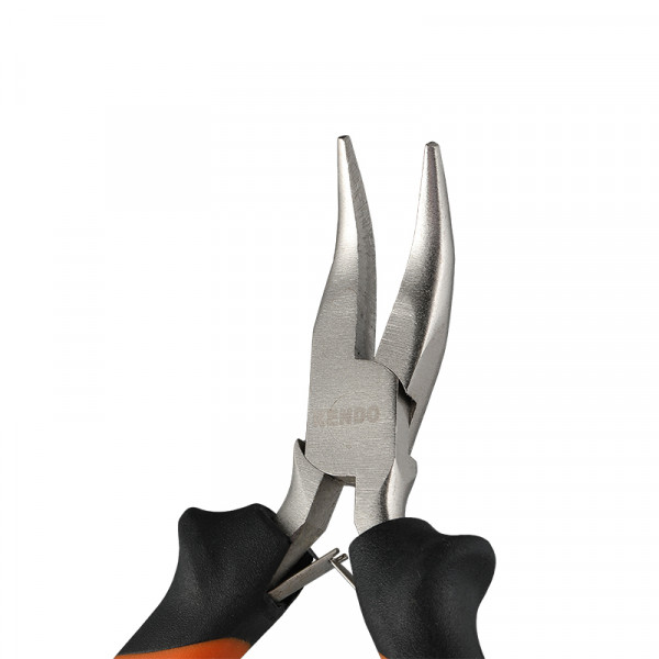 KENDO hajlított műszerész telefonfogó 125 mm – nikkel bevonat, csúszásmentes markolat, precíziós munkákhoz