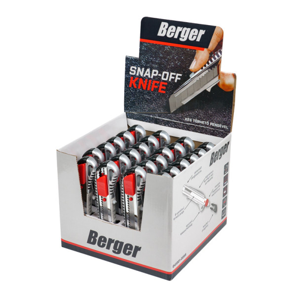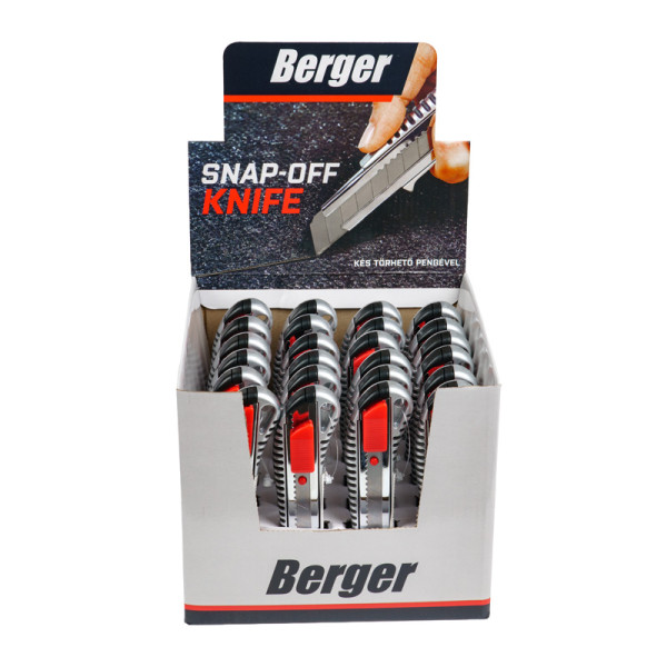 BERGER Fémházas kés törhető pengével 18mm – Kompakt alumíniumház automata pengerögzítővel