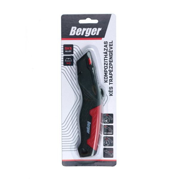 BERGER kompozitházas kés kábelcsupaszítóval – Multifunkciós vágóeszköz 3 darab beépített SK5 pótpengével