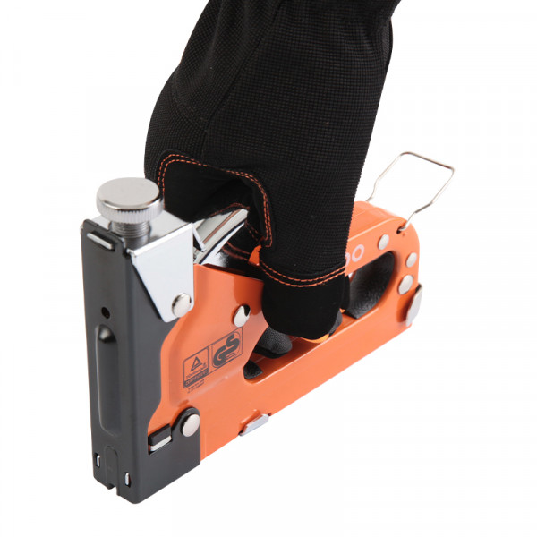A KENDO Multifunkciós tűző és szegezőgép egy masszív acélszerkezetű kéziszerszám, amelyet kifejezetten kemény és puha anyagok gyors rögzítésére terveztek. A beütési erő gombbal szabályozható, így precízen alkalmazható különböző felületeken. A biztonsági zár megakadályozza a véletlen elsütést, míg a 200 kapocs befogadóképesség hosszabb munkavégzést tesz lehetővé megszakítás nélkül. Kompatibilis D-, U- és T-típusú kapcsokkal, így sokoldalúan használható.