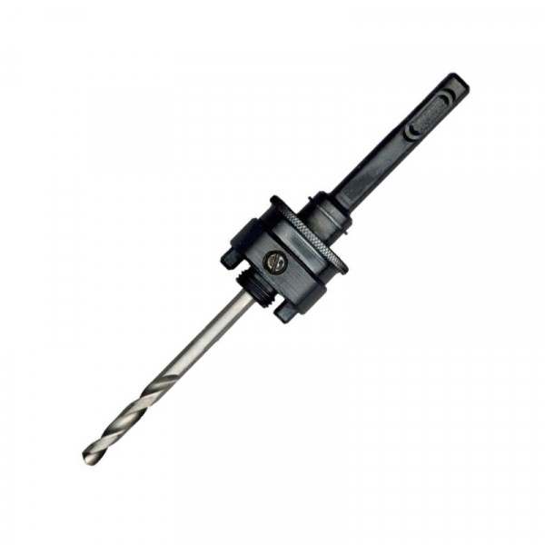 VIKING adapter SDS+ szárvéggel Ø32-250 mm átmérőjű körkivágóhoz rövid HSS központfúróval (MPD4S) érkezik, amely HSS Bi-metal körkivágókkal használható.