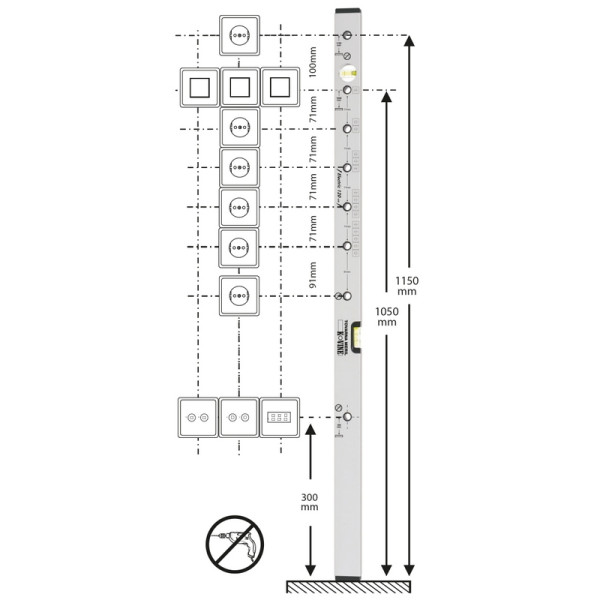 Villanyszerelő vízmérték 120cm ezüst eloxált alu Professzionális