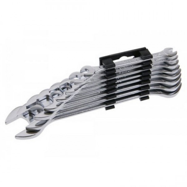 FESTA villáskulcs készlet, műanyag rendezőben. A villáskulcsok kiváló minőségű króm-vanádium acélból készülnek. Ez a magas minőségű acél a kívánt tulajdonságokra edzett, és felülete matt kemény krómmal van kezelve az optimális felületi keménység és a korróziós hatásokkal szembeni ellenállás elérése érdekében.